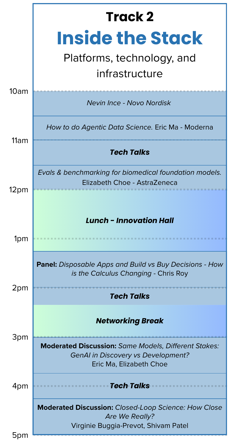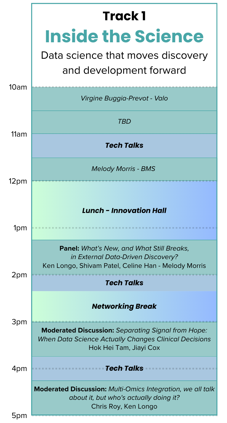 🎤 All keynotes, panels, and discussion sessions led by data science leaders from top pharma and diagnostics companies